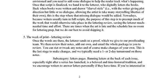 .A week or two ago, a reader asked whether or not we have any sort of a briefing document for those creators who are coming over to writing comics from other fields, such as screenwriting. And indeed we do—and I’m going to share it with you below, or at least a portion of it, the portion that is fit for public consumption. This “Welcome To Comics” document was written by editor Sarah Brunstad—the stuff that’s been left out of it here mostly involves a lot of e-mail addresses and server information as well as some example scripts showcased for format and content measurement. so you’re really not missing anything all that interesting.